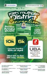 The convention will feature a variety of activities including leadership sessions, service discussions, networking opportunities, and celebrations of Lions’ achievements across Nigeria.