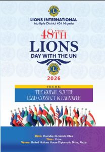 Lions International Multiple District 404 Nigeria proudly announces the 48th edition of Lions Day with the United Nations, a prestigious global observance that celebrates the long-standing partnership between Lions and the United Nations in advancing humanitarian service, peace, and sustainable development.